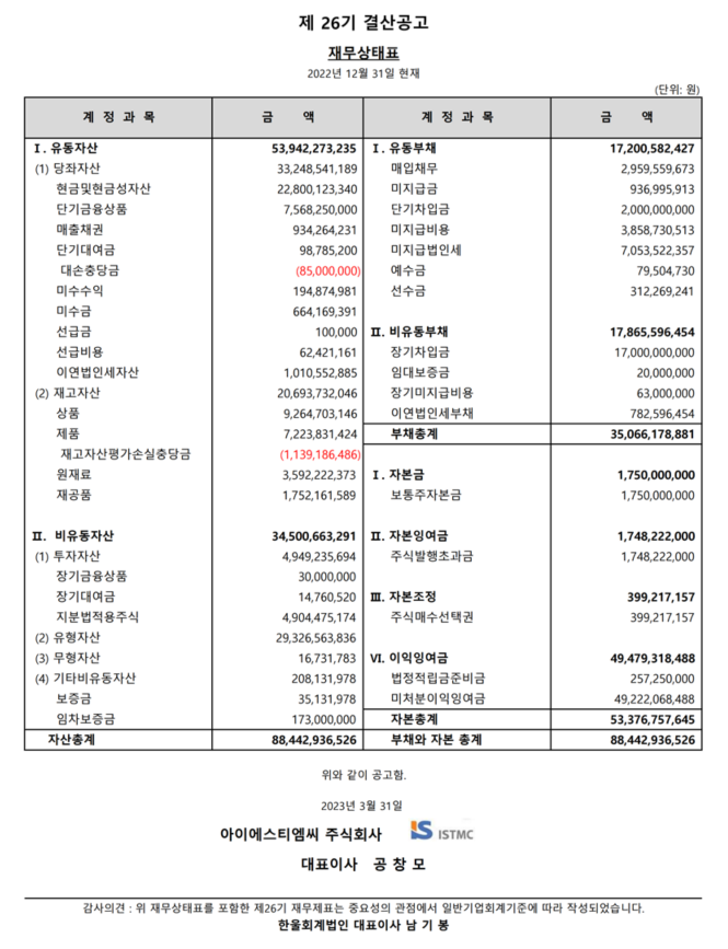 ISTMC 제 26기 결산공고